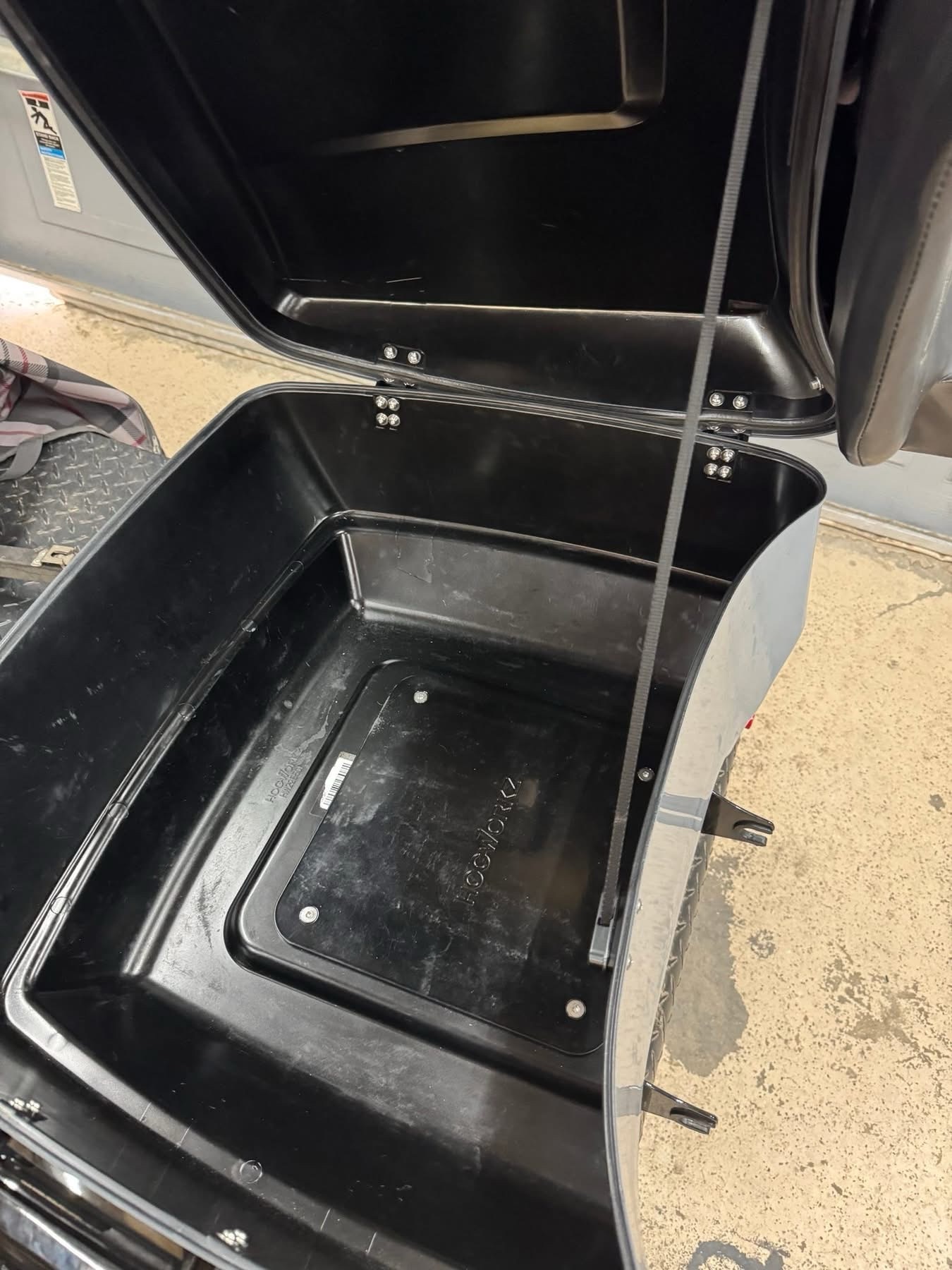 Factory color-matched Atlas Silver Metallic with solid storage capacity and that clean touring look. Perfect upgrade for comfort and long rides.